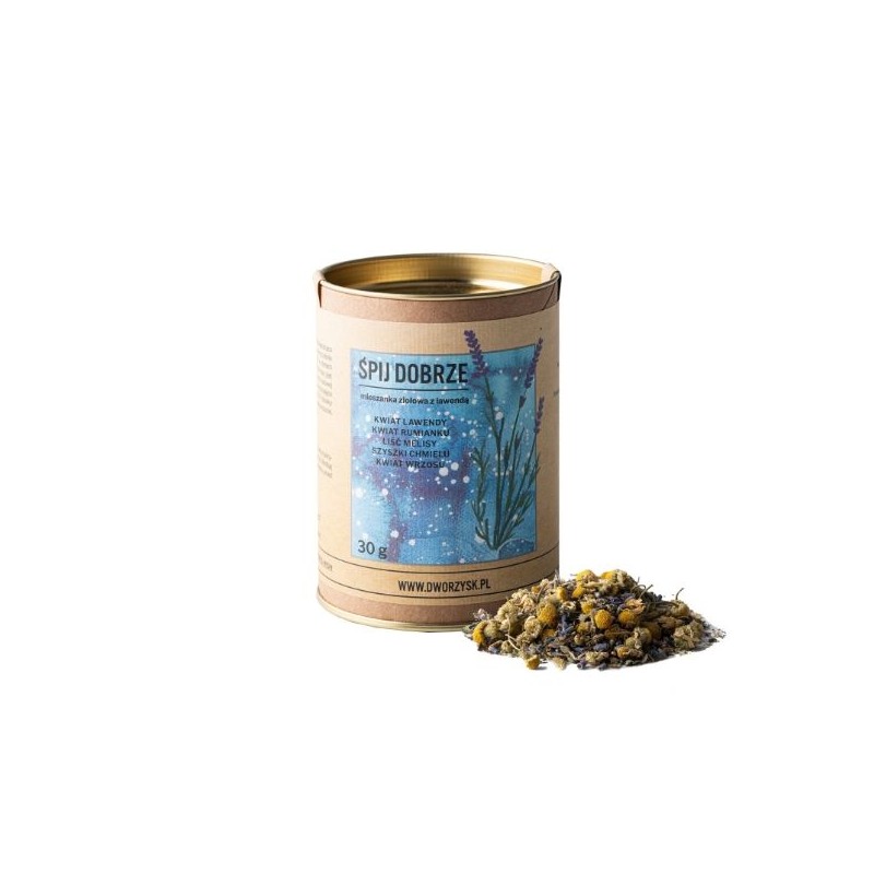 Składniki: kwiat lawendy 37%, kwiat rumianku, liść melisy, kwiat wrzosu, szyszki chmielu.