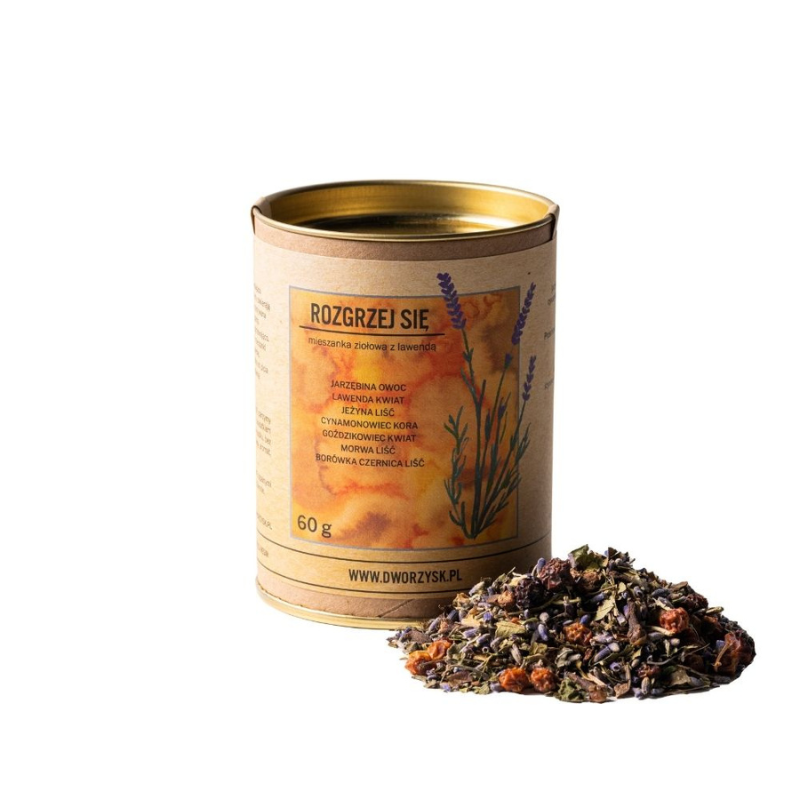Ziołowa mieszanka na rozgrzanie, bogata w witaminę C oraz sole mineralne. Połączenie owoców jarzębiny, liści jeżyny, lawendy oraz goździkowca i cynamonowca działa wzmacniająco i wspierająco przy przeziębieniu. Napar z mieszanki Rozgrzej Się uczucie zmniejszy zmęczenia, rozgrzeje, wesprze pracę układu trawiennego oraz pomoże przy pierwszych oznakach przeziębienia.